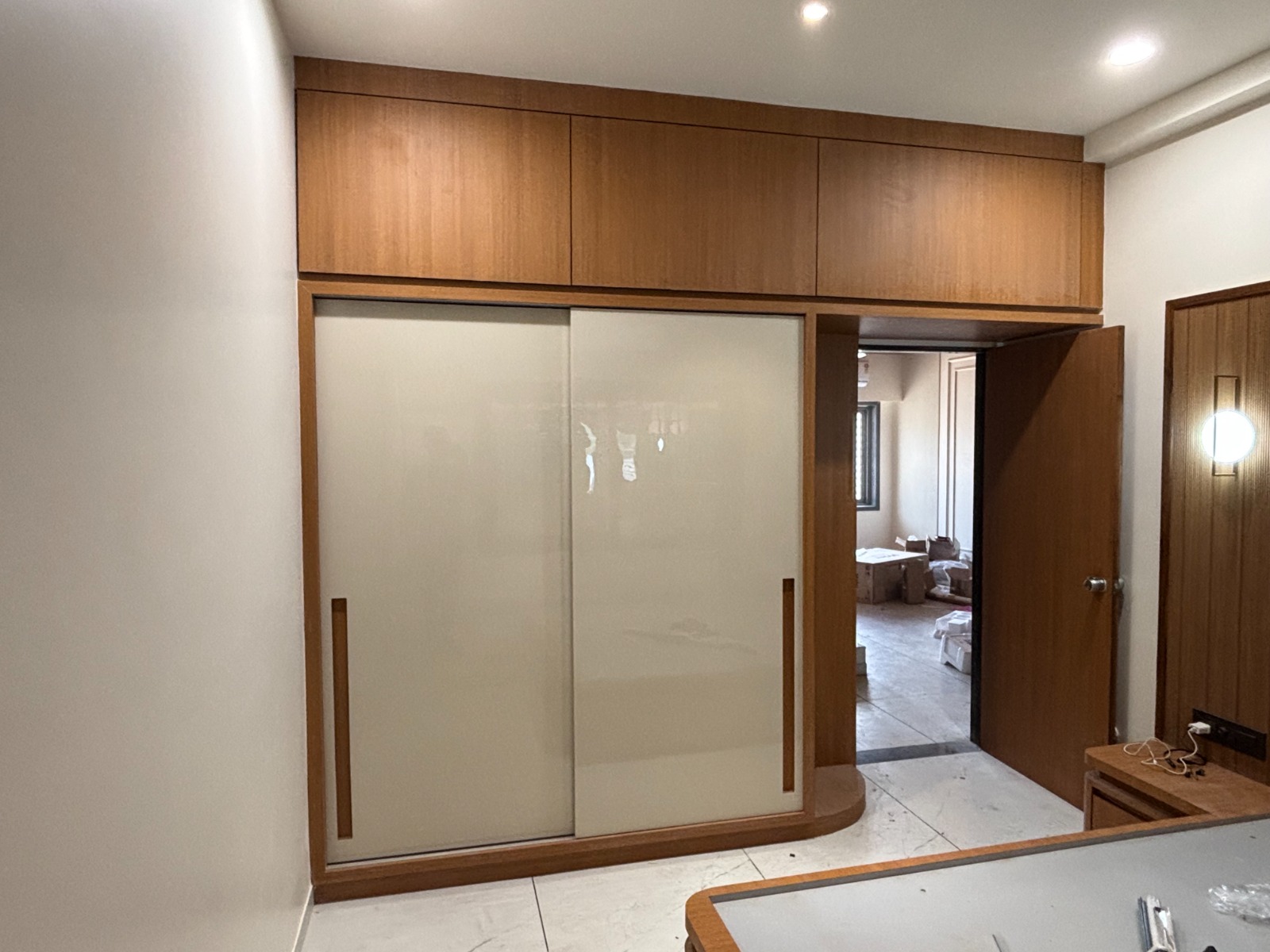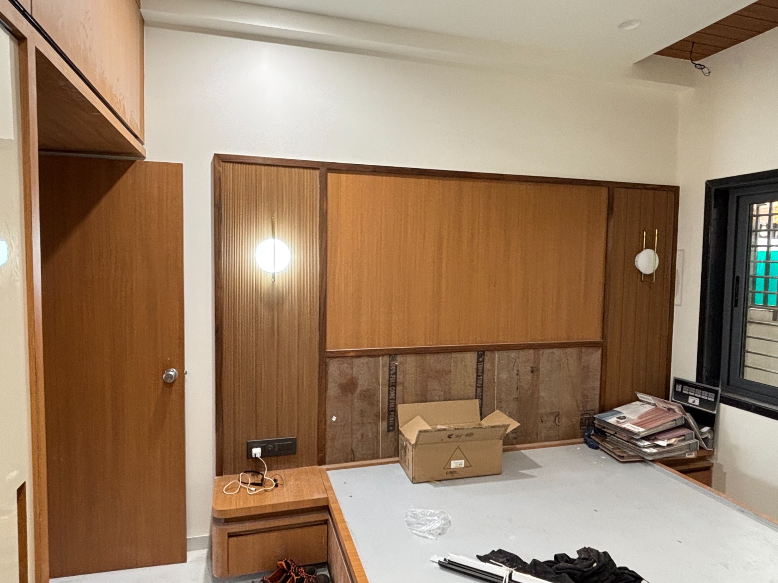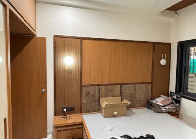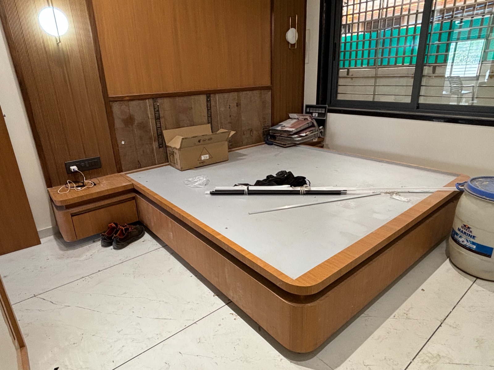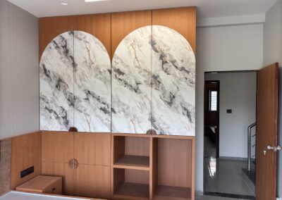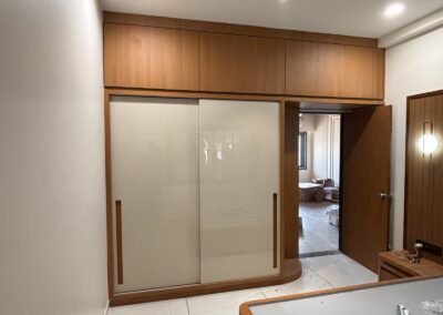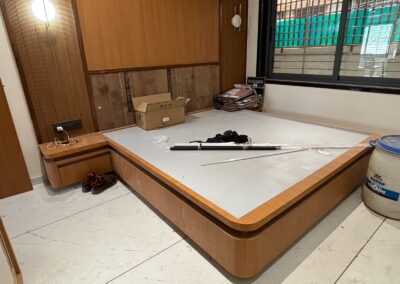 We designed and installed a contemporary-style bed and a spacious wardrobe with premium finishes, ensuring both aesthetics and utility. The layout and design enhance comfort while maximizing storage.