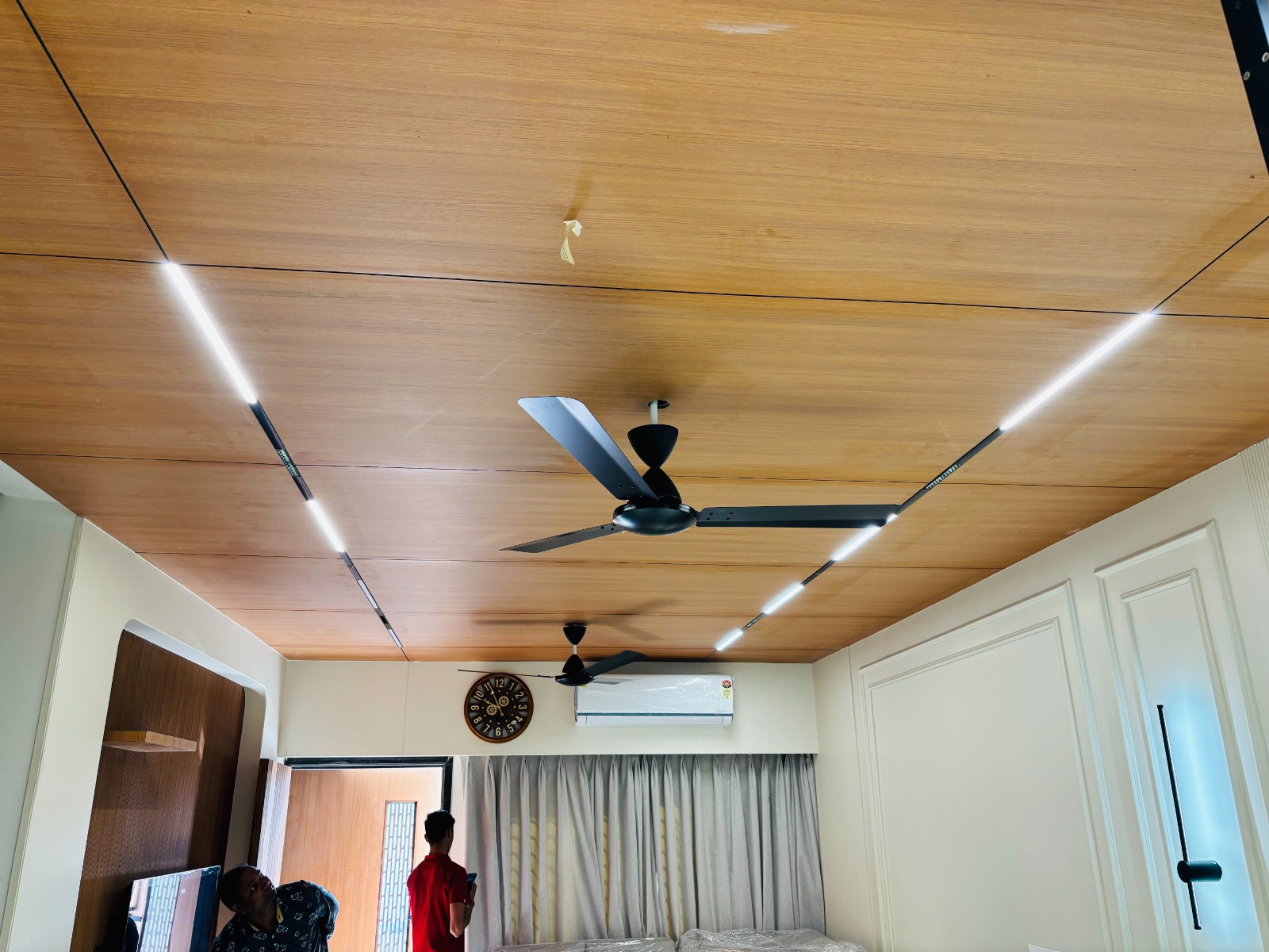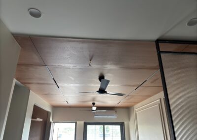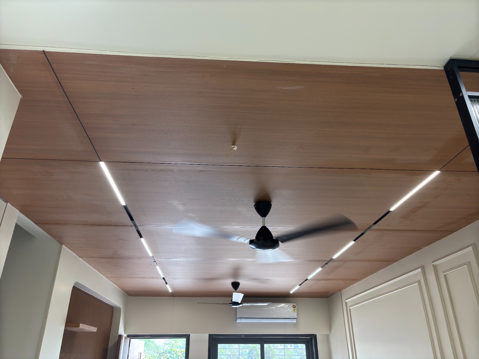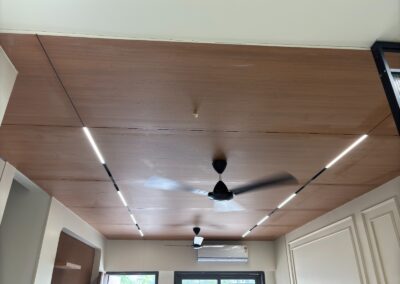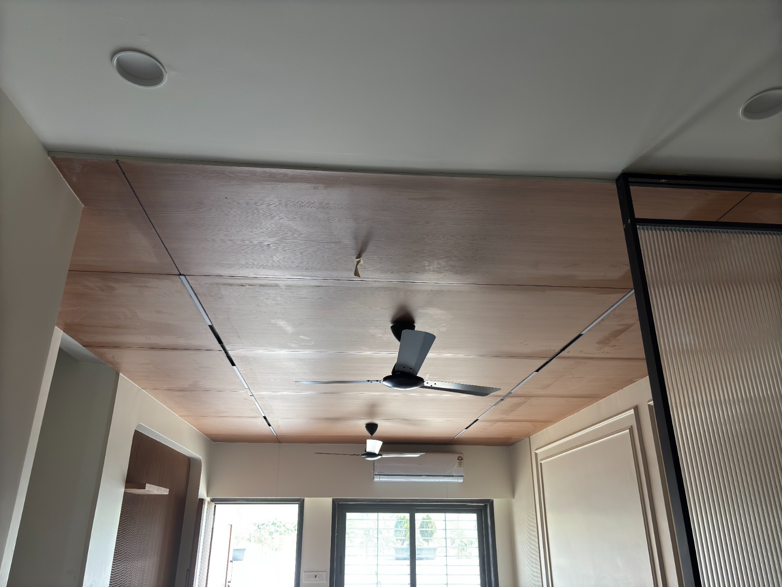 A beautifully designed wooden ceiling adds character and elegance to the space. Precise workmanship and premium-quality materials elevate the overall interior appeal.