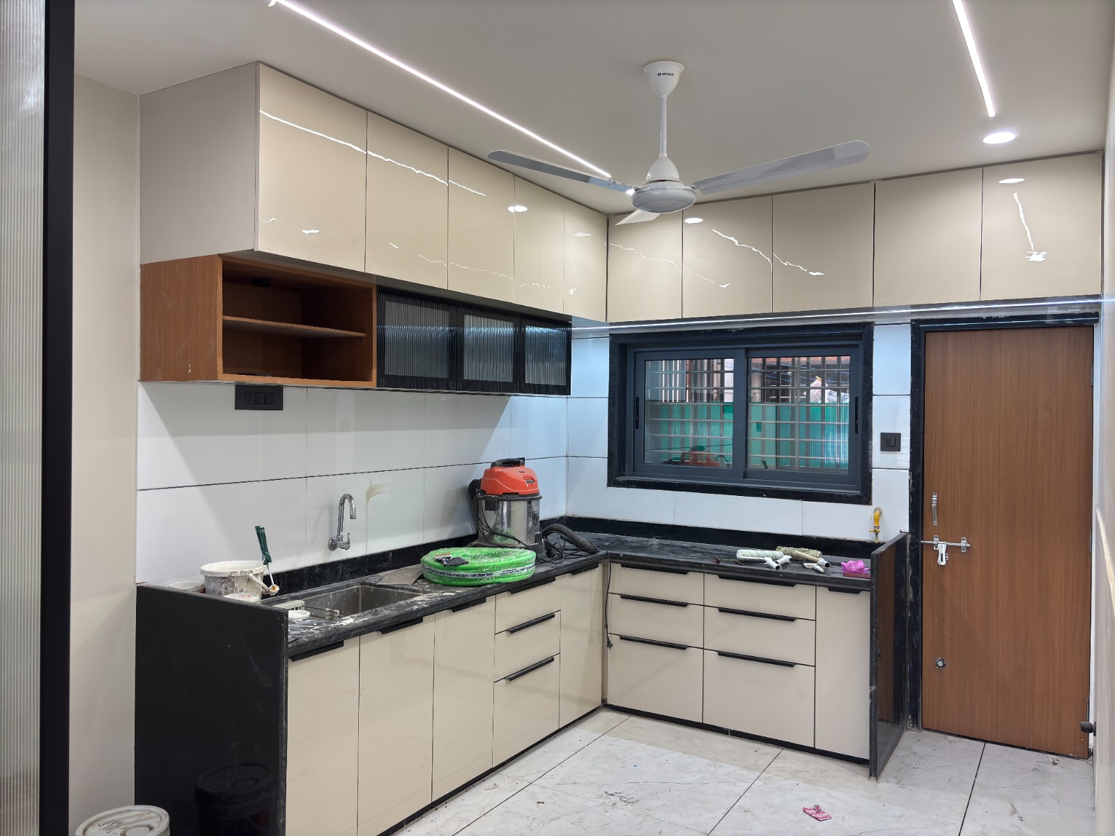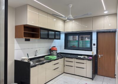 A fully customized modular kitchen was crafted with high-quality materials, smart storage solutions, and a sleek modern look. The design ensures smooth workflow, durability, and easy maintenance.